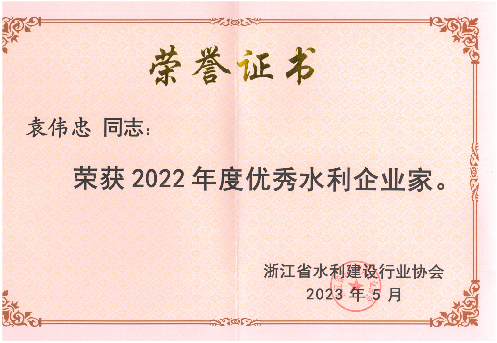 優秀水利企業家、浙江省建筑業優秀企業家