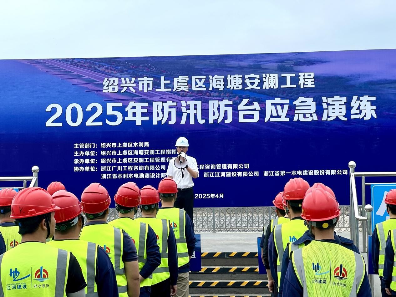 為全面提升極端天氣應對能力,筑牢汛期安全防線,4月22日,由公司承建的紹興市上虞區海塘安瀾工程組織開展了2025年度防汛防臺應急演練。本次演練以實戰化模擬"風、雨、潮"三碰頭的極端天氣為背景,重點檢驗突發險情應急處置能力,為即將到來的主汛期做好充分準備。